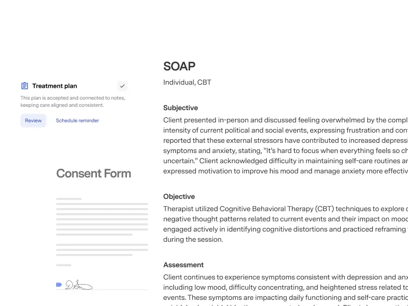For independent therapists, Blueprint is a full EHR with an AI Assistant built in. For organizations, the Assistant plugs into your existing EHR – delivering documentation and clinical support alongside the systems they’re already used to.