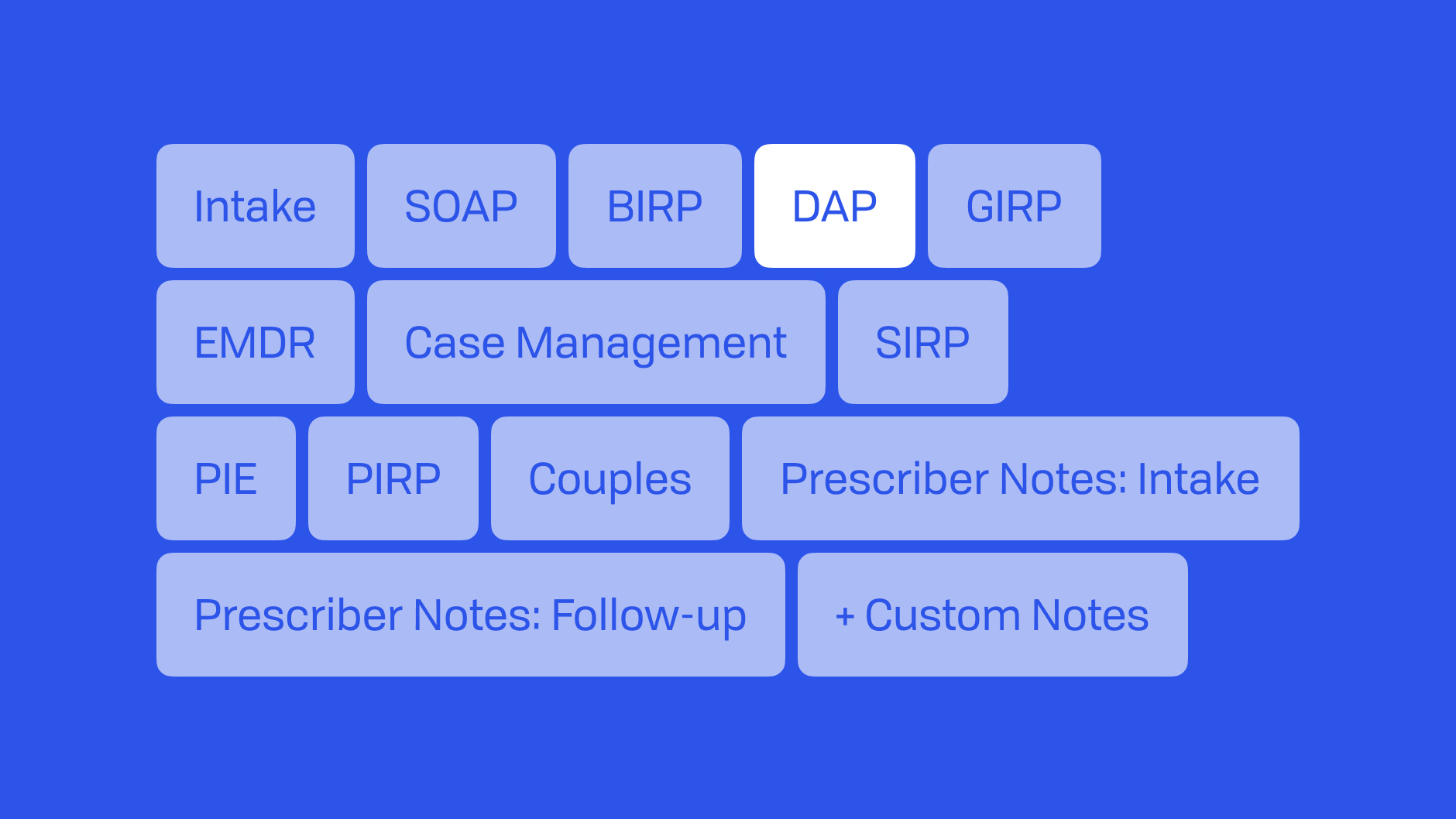 - Choosing between DAP and other formats (SOAP, BIRP, DARP) depends on your setting, diagnosis, and reporting needs.